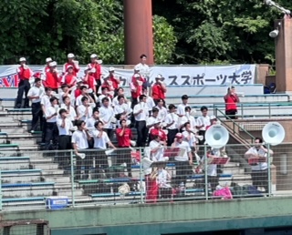 スタンドでは高校東京校の吹奏楽部、野球部の生徒が応援駆けつけてくれた他、大学東京からも世田谷区から遠路はるばる応援に駆けつけてくれたクラスメート、伊藤先生をはじめとした先生方も一緒に大きな声で応援してくれました。