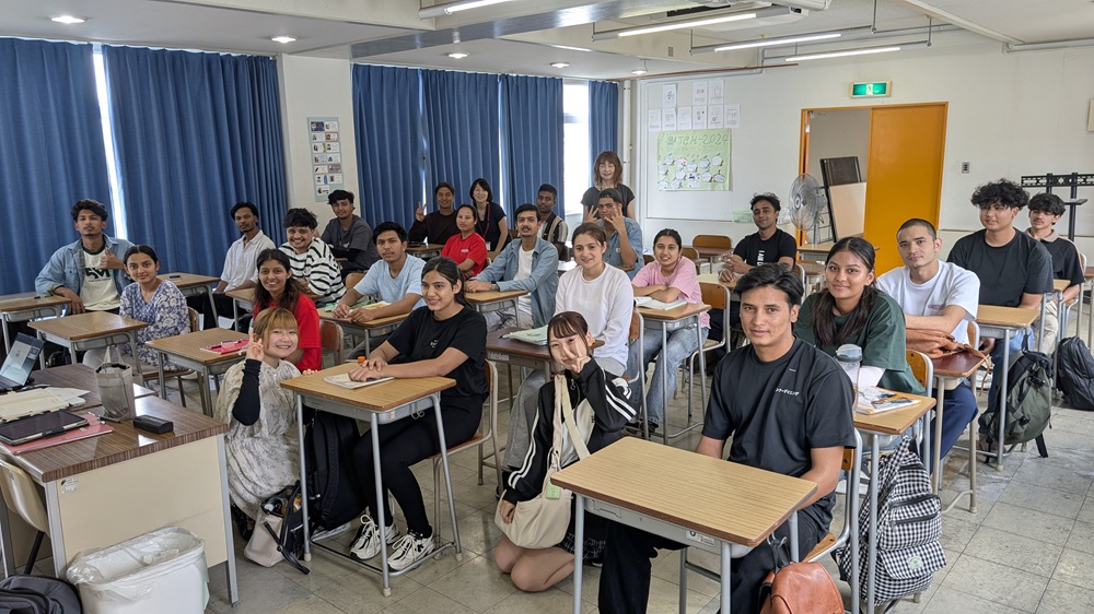 高校生にキャンパスライフや一人暮らしなどのアドバイスをしてくれましたが、留学生のいるウェルネスIT科と日本語科のクラスにも入って話をしてくれました!
