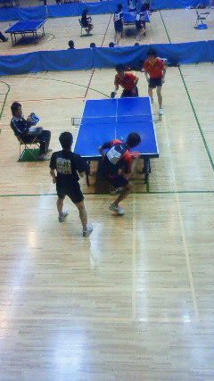 大会初日のダブルスでは、長谷川達朗・増山裕之組が見事優勝しました(^_^)v3回戦と準決勝は、ともに2セット先取されたあとの大逆転勝ち!さらに続く決勝戦では2年生の塚越翼・長谷川恭平組に勝って上がってきた相手に最終セット<11 - 0>と完封勝ちをしました。