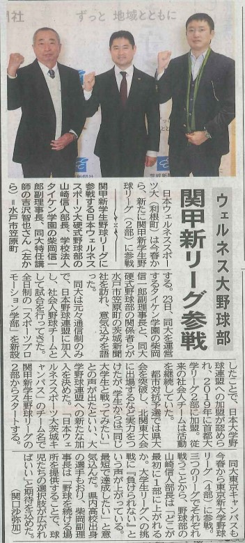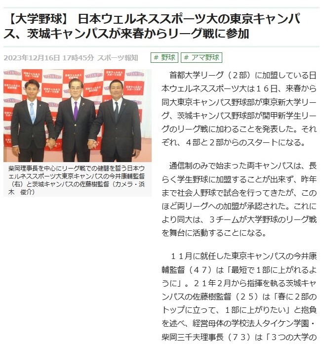 同じく日本野球連盟に加盟していた同大茨城キャンパス野球部は2023年12月、「関甲新学生野球連盟」に加盟。