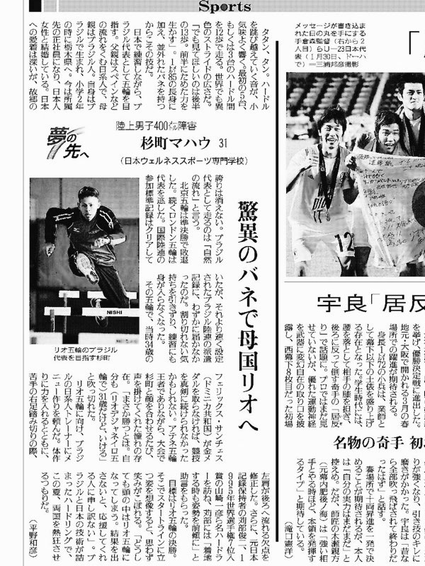 - 杉町マハウ新聞掲載【リオ五輪】